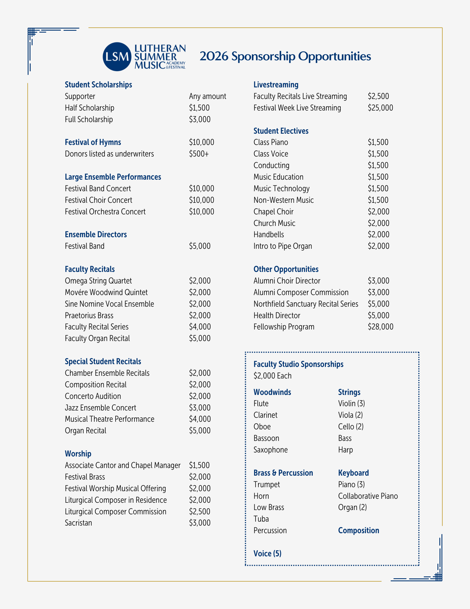 Faculty Recitals Live Streaming: $2,500