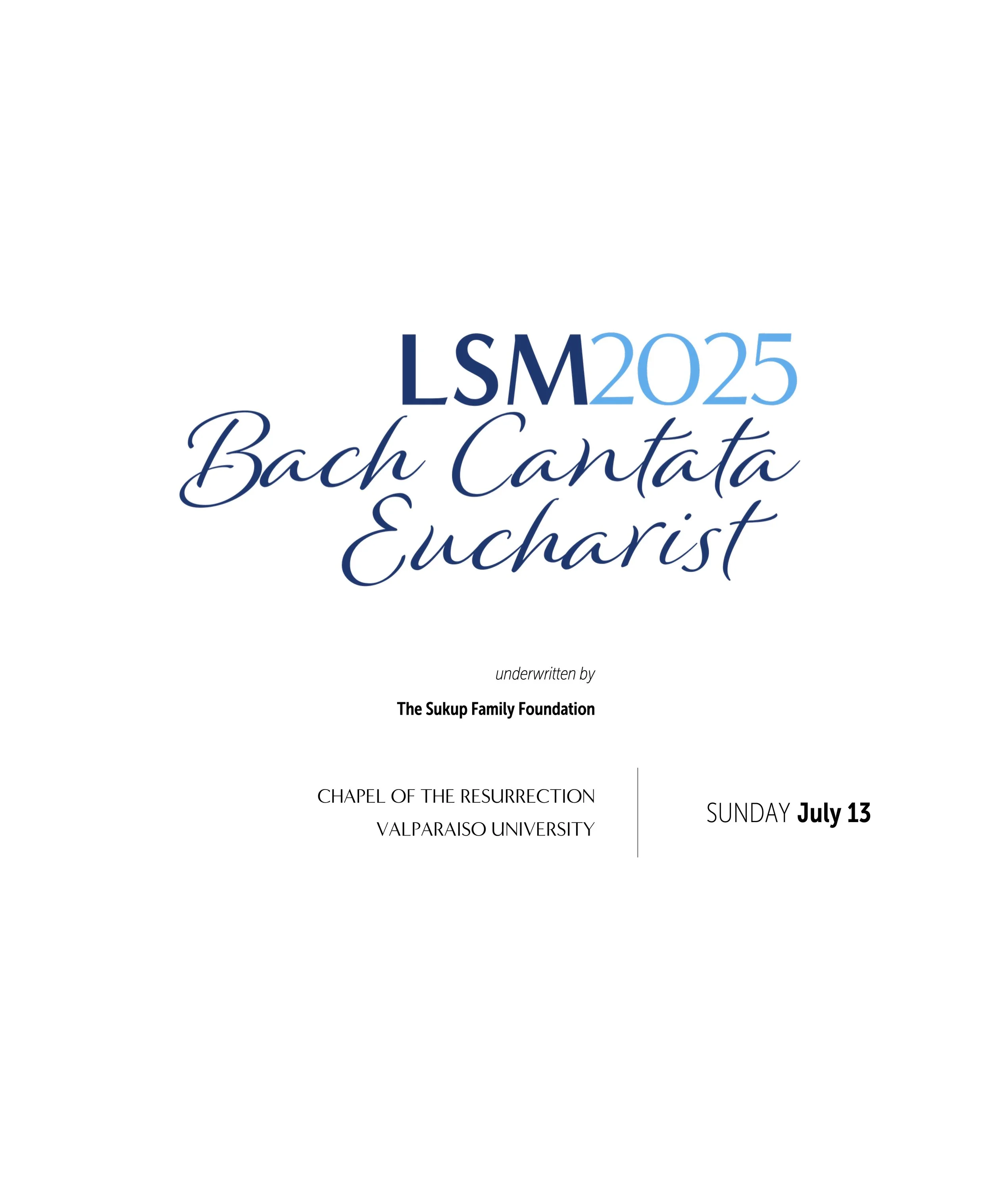 Bach Cantata Eucharist | July 13, 2025 Jul 12 Written By LSM Admin Bach Cantata Eucharist | Sunday, July 13 | 10:00 AM CDT Live from Lutheran Summer Music 2025 at Valparaiso University Click to enlarge program in separate tab LSM Admin